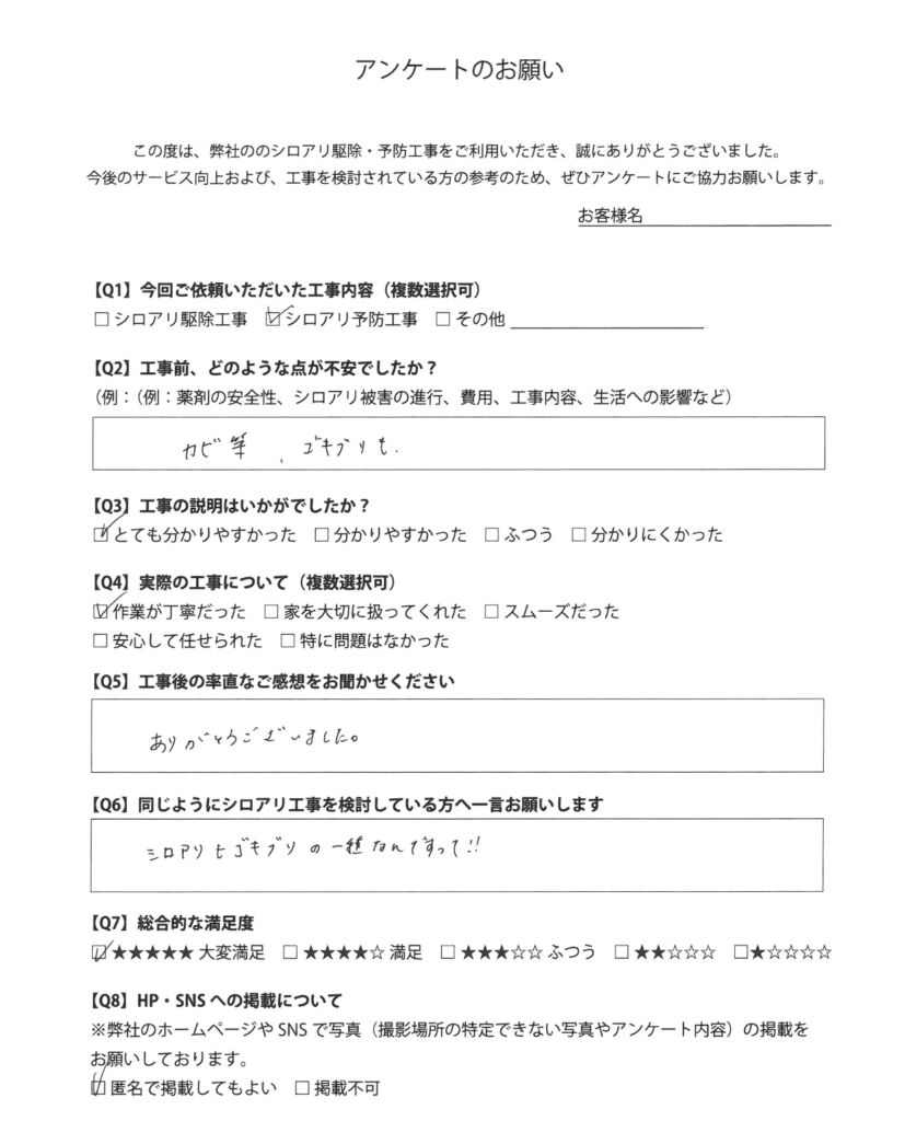 M・Y様、この度は防蟻工事のご依頼ありがとうございました。床下の専門家として、今後も定期的に床下点検をさせていただきますので、よろしくお願いします(^^)