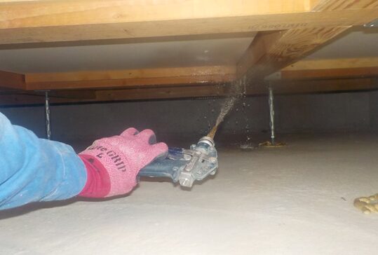 木部には木部用処理剤、土壌には土壌処理剤でシロアリ予防を行っております。