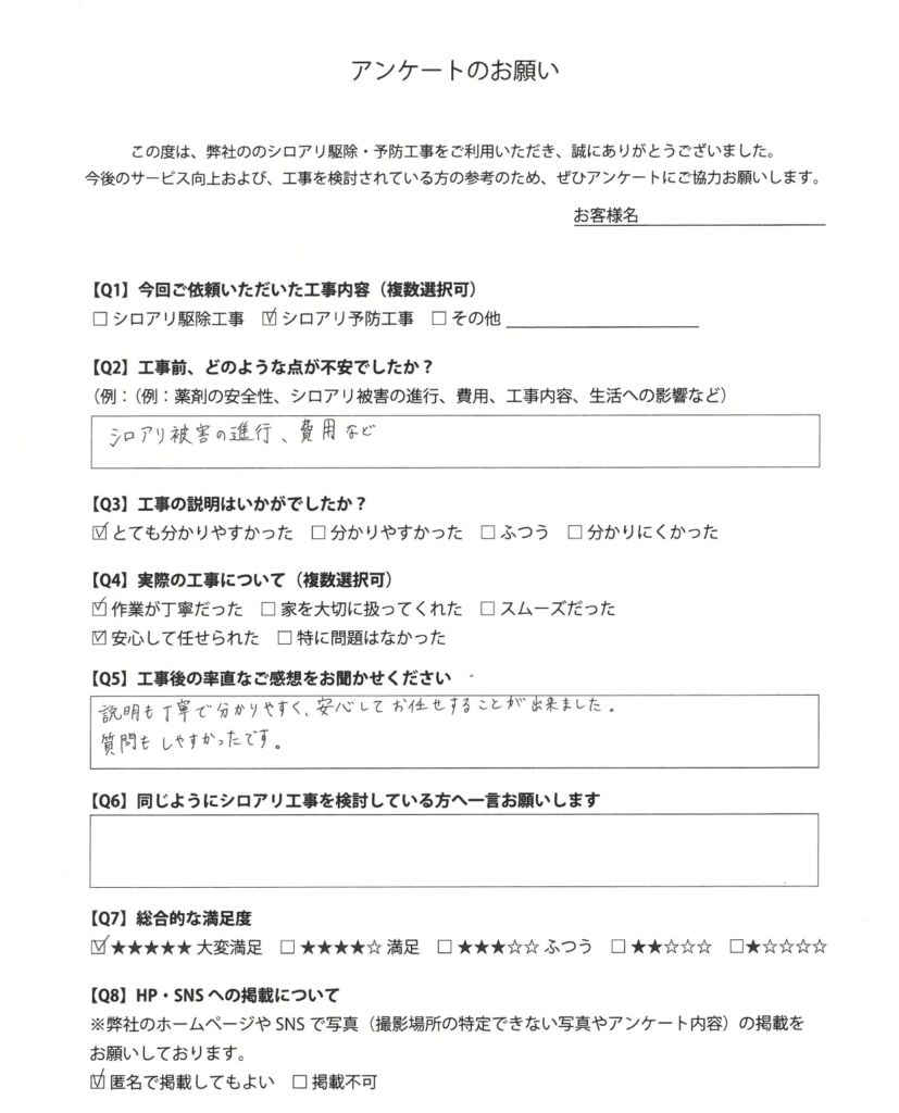 木部には木部用処理剤、土壌には土壌処理剤でシロアリ予防を行っております。